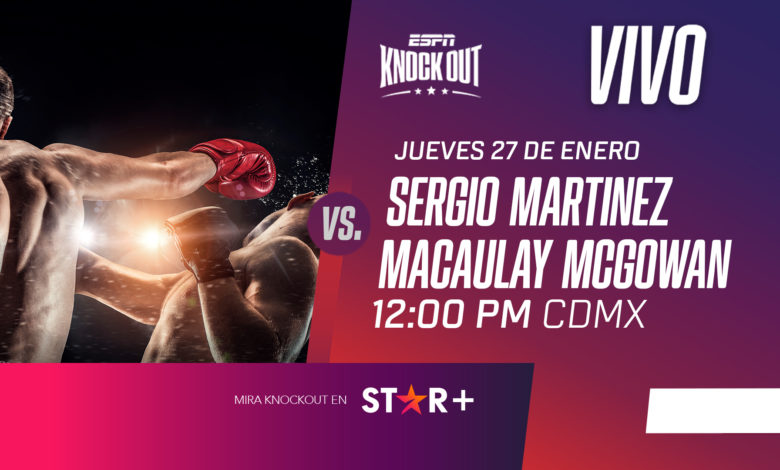 Un nuevo maratón de emociones será el que nos ofrezca ESPN KNOCKOUT a partir de este jueves 27 con el regreso del excampeón Sergio ‘Maravilla’ Martínez, que a sus 46 años estará de vuelta en el ring para medirse en Madrid con Macaulay McGowan en un combate pactado a 10 episodios y con la mira puesta en una histórica oportunidad de campeonato del mundo.