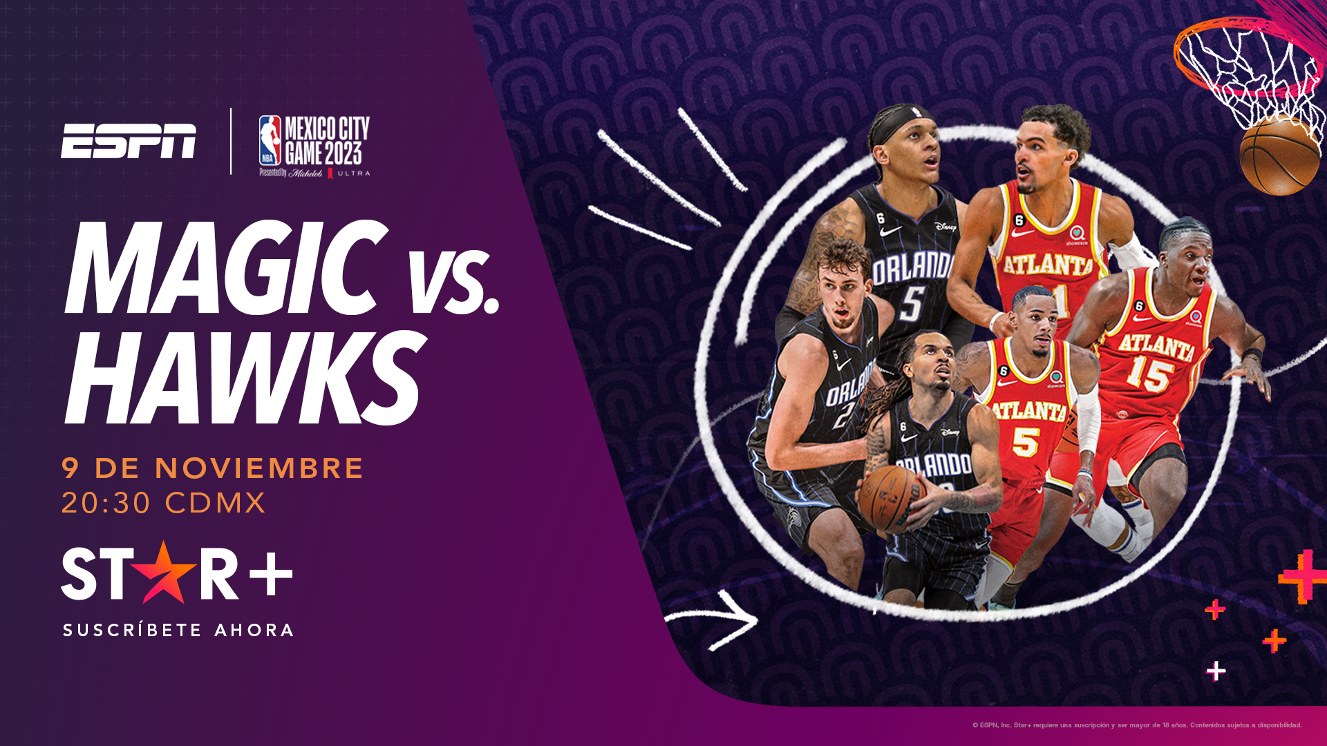 Este jueves 9 de noviembre, en punto de las 8:30 p.m., arrancará el duelo entre los Orlando Magic y los Atlanta Hawks totalmente en vivo para todos los fans del baloncesto, en la señal de ESPN y para los suscriptores de Star+.  Luego de 10 años de no visitar la capital de nuestro país, los Orlando Magic llegan a la cancha de la Arena Ciudad de México, para enfrentar a los Atlanta Hawks en su primer partido en la capital de nuestro país.