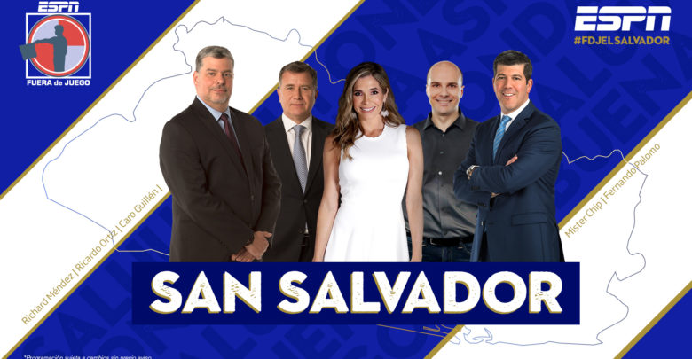 Luego del gran éxito obtenido en 2018, “Fuera de Juego”, el programa de noticias, análisis y opinión de ESPN, dedicado al fútbol europeo e internacional, visita por segunda ocasión El Salvador. El programa será grabado desde la Plaza Gerardo Barrios en San Salvador, el viernes 22 de marzo. Esta emisión especial de “Fuera de Juego” será transmitida el sábado 23 de marzo, a las 1:00 a.m. (hora local) por ESPN, y a las 12:00 a.m. (hora local) y 12:00 p.m. (hora local) por ESPN 2.