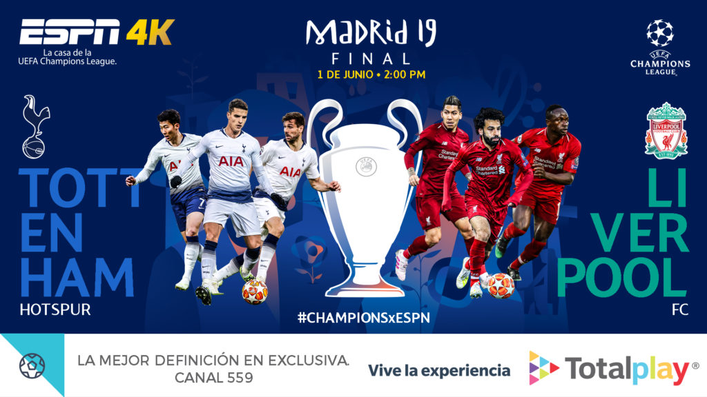Este próximo sábado 1 de junio, los aficionados en México del mejor fútbol del planeta podrán disfrutar de una experiencia única e inigualable con la transmisión de ESPN y Totalplay de la Final de la UEFA Champions League en vivo en 4K. Esta será la segunda ocasión consecutiva en la que Totalplay e ESPN unan esfuerzos para ofrecer a los fans del fútbol la mejor calidad.