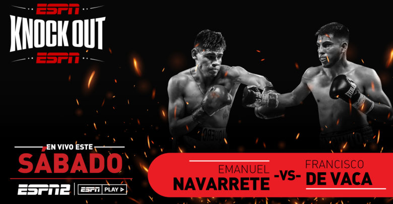Ya sabemos lo que puede suceder en el ring cuando dos mexicanos están frente a frente, y es precisamente una oferta de mucha adrenalina la que nos traerán al rin el mexiquense Emanuel Navarrete y el michoacano avecindado en Phoenix, Arizona, Francisco De Vaca en el evento estelar de la transmisión de ESPN KNOCKOUT en exclusiva para el territorio mexicano con el cetro Supergallo OMB en juego. La velada se podrá ver en vivo a través de las pantallas por ESPN2 & ESPN Play, desde el Bank of California Stadium, en Los Ángeles, California, casa del equipo LAFC de la MLS.