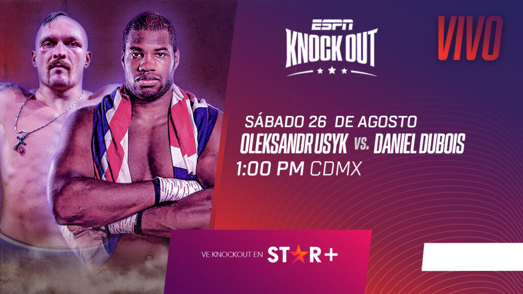 Una sensacional triple jornada de boxeo nos entregará ESPN KNOCKOUT este fin de semana, siendo los pesos Pesados los principales protagonistas, entre ellos el triple campeón de la división y considerado entre los mejores libra por libra Oleksandr Usyk, quien expondrá los cinturones AMB, FIB y OMB ante el peligroso Daniel Dubois.