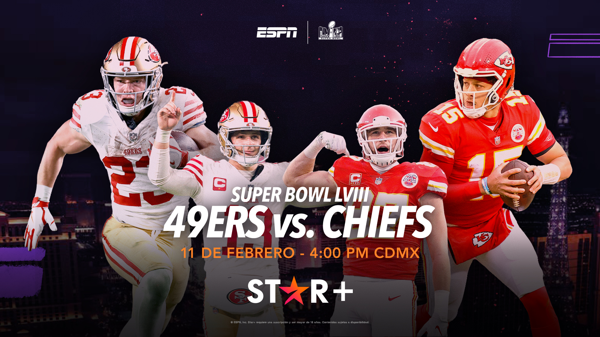 La cuenta regresiva ha comenzado para el esperado Super Bowl LVIII y estará disponible en VIVO para los suscriptores de Star+ y la señal de ESPN.