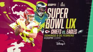 Este domingo 9 de febrero, los Kansas City Chiefs y los Philadelphia Eagles se verán cara a cara en el enfrentamiento definitivo de la temporada, que llegará en vivo por ESPN y Disney+ a partir de las 5:30 p.m. en Centro América, 6:30 p.m. Panamá y 7:30 p.m. Dominicana. A solo unos días del Super Bowl LIX, los Chiefs con la oportunidad histórica de lograr el primer tricampeonato de la era moderna de la NFL, se enfrentan a unos Philadelphia Eagles que, tras la derrota de 2023, están listos para saldar cuentas y pelear por la victoria. Domingo 9 de febrero